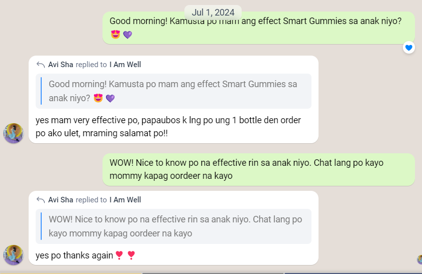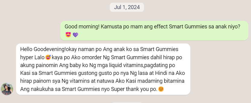 Highly recommend your Smart Gummies! 🥰 My sibling became more active in school, he memorizes faster & it's not just that before, he easily gets rid of virus like cold & cough, now we noticed that his immune system is stronger, since he took Smart Gummies, he hasn't been back having a cold & cough. Thank you so much!