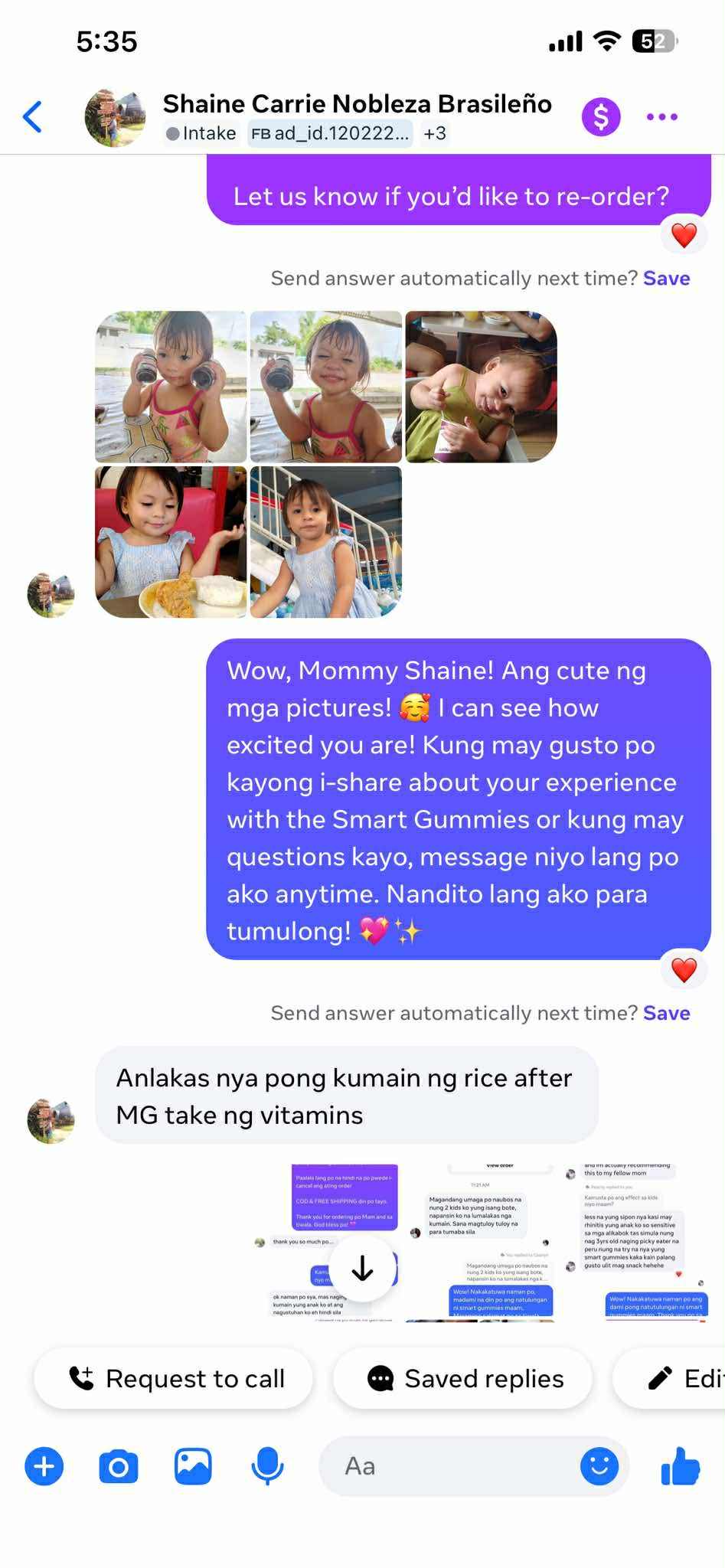 Huuuy! Grabeee na yarn! Mahilig sa gummies mga pamangkin ko,so talagang nagustuhan nila bukod don may vitamins na siya so talagang ang mga bata e ginanahan kumaen ng kanin. Tamad kasi sila uminom ng liquid vitamins so tinry namin to grabee highly recommended talaga! Kaya mga mommy and tita mommy wag na kayo magdalwang isip. Bumili na kayo nito hindi kayo magsisisisi 😊☺️ paorder pa po ulit! 😍🥰