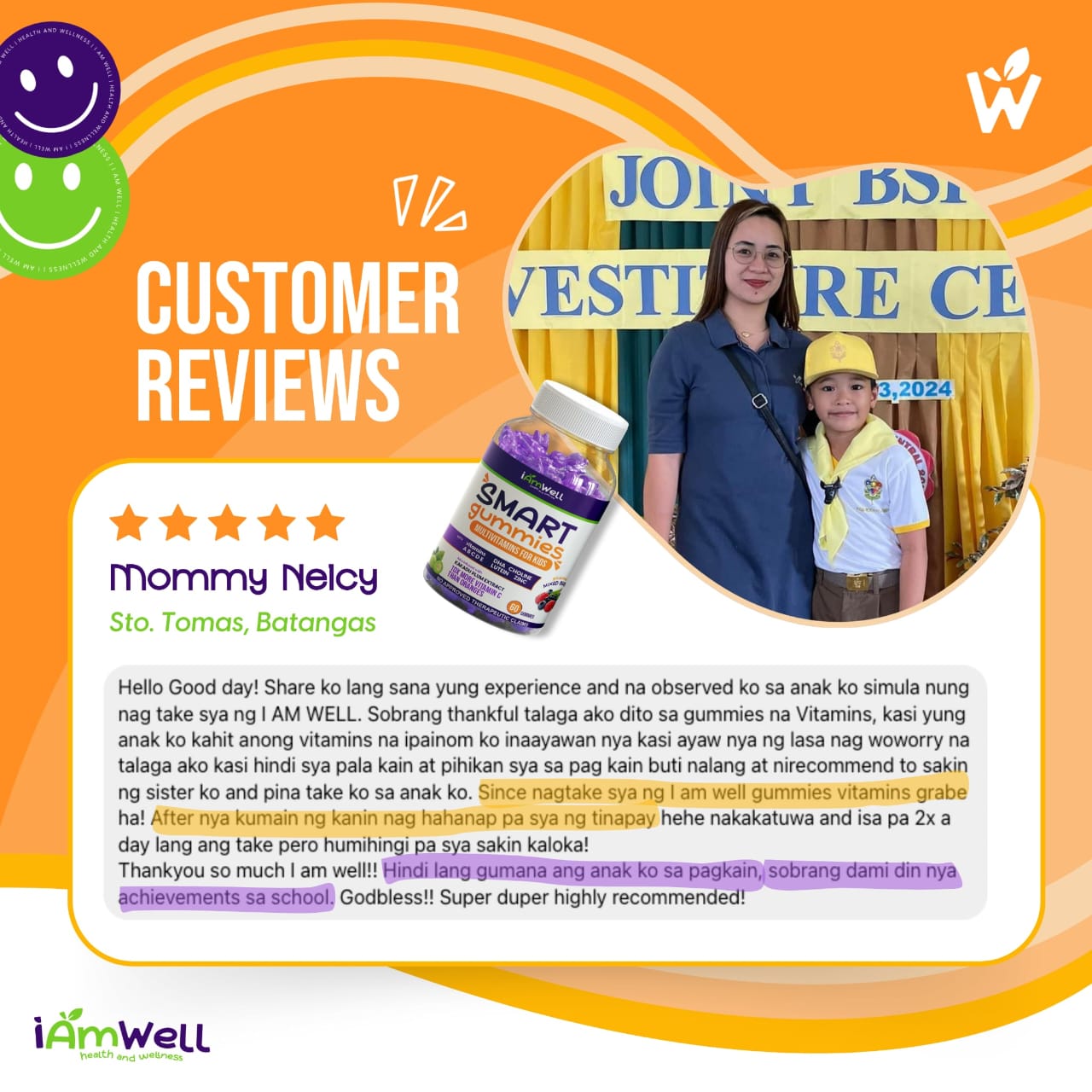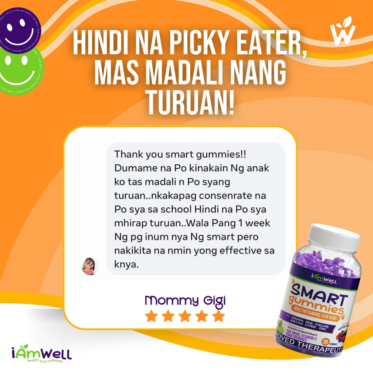 Thanks to I Am Well Smart Gummies! My nephew started taking I Am Well weeks ago and he enjoys it! Making this kid take vitamins has never been this easy as the product's berry taste is enjoyed by him. Feels like he is just eating candies but with enriched vitamins. Great product, I Am Well! 💚 💜